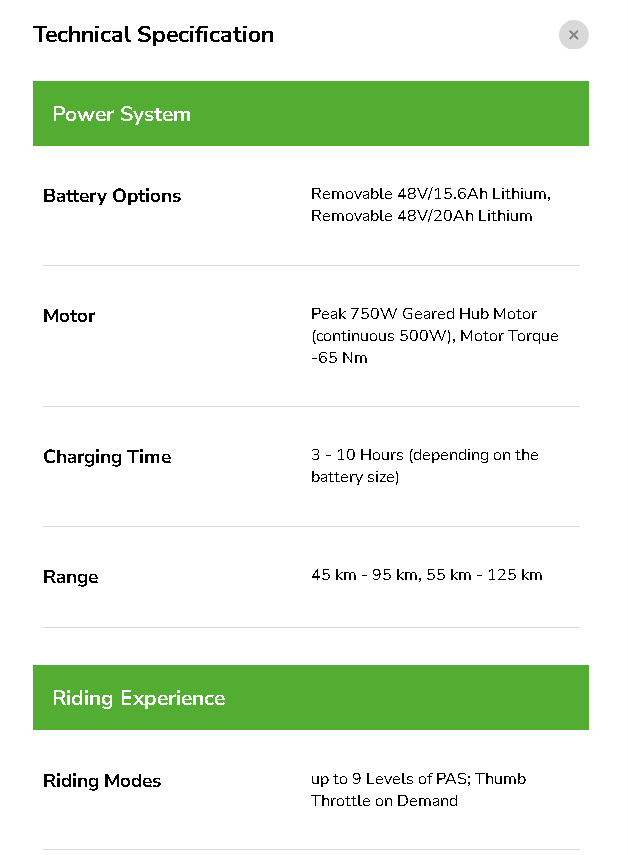 (Range can vary depending on weight of rider & load carried)