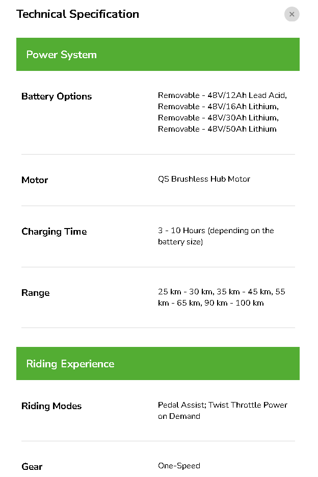 (Range can vary depending on weight of rider & load carried)