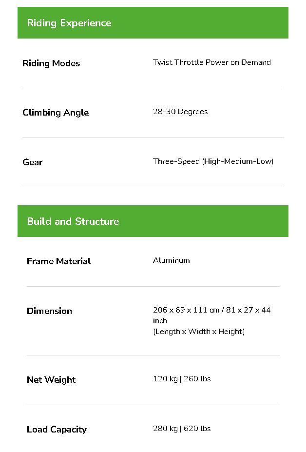 (Range can vary depending on weight of rider & load carried)