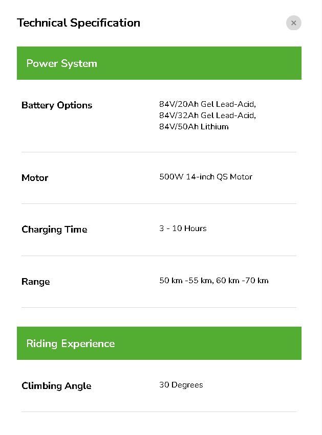 84v 20AH Lead Acid - $3399.95 - 45-55kms