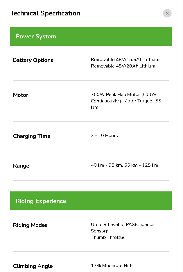 (Range can vary depending on weight of rider & load carried)