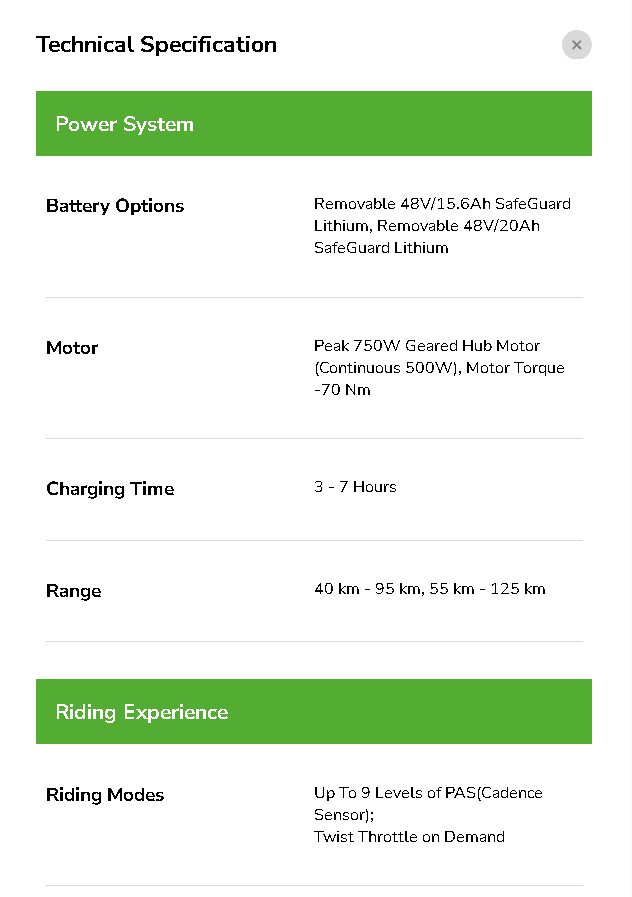(Range can vary depending on weight of rider & load carried)